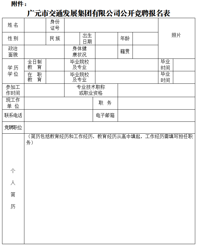 附件:广元市交通发展集团有限公司公开竞聘报名表